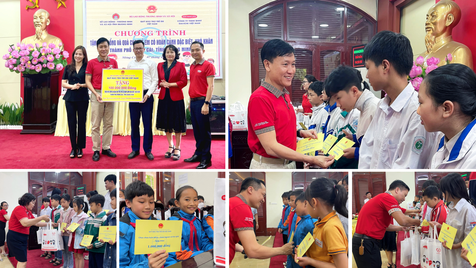 Trong khuôn khổ các hoạt động đồng hành cùng Quỹ Bảo trợ Trẻ em Việt Nam, ngày 7/4/2022, Quỹ Vì cuộc sống tươi đẹp của Dai-ichi Life Việt Nam đã phối hợp cùng Quỹ Bảo trợ Trẻ em Việt Nam trao tặng 100 học bổng với tổng trị giá 100 triệu đồng cho 100 em có hoàn cảnh đặc biệt, khó khăn vươn lên học khá, giỏi tại TP. Móng Cái, tỉnh Quảng Ninh.